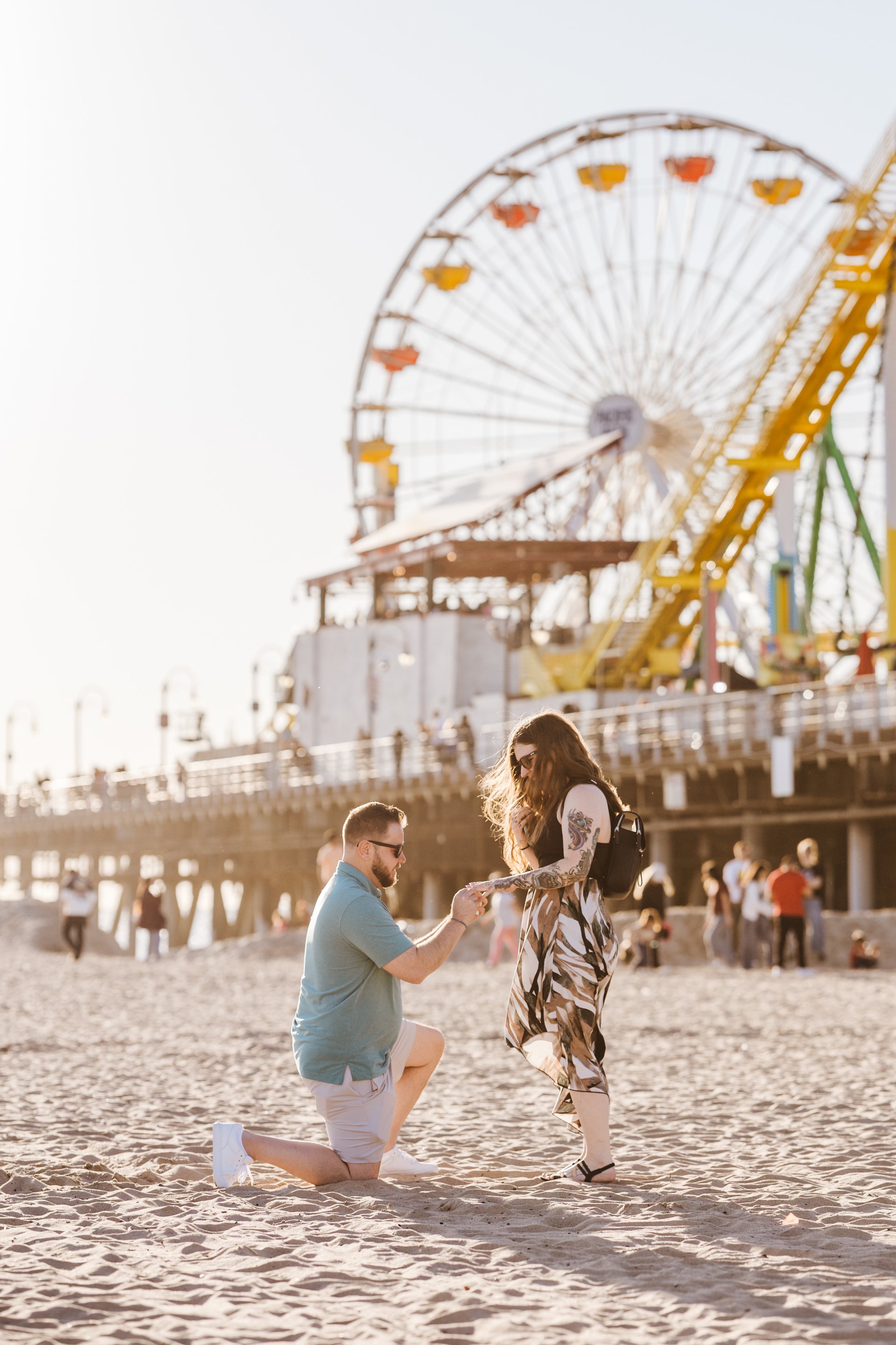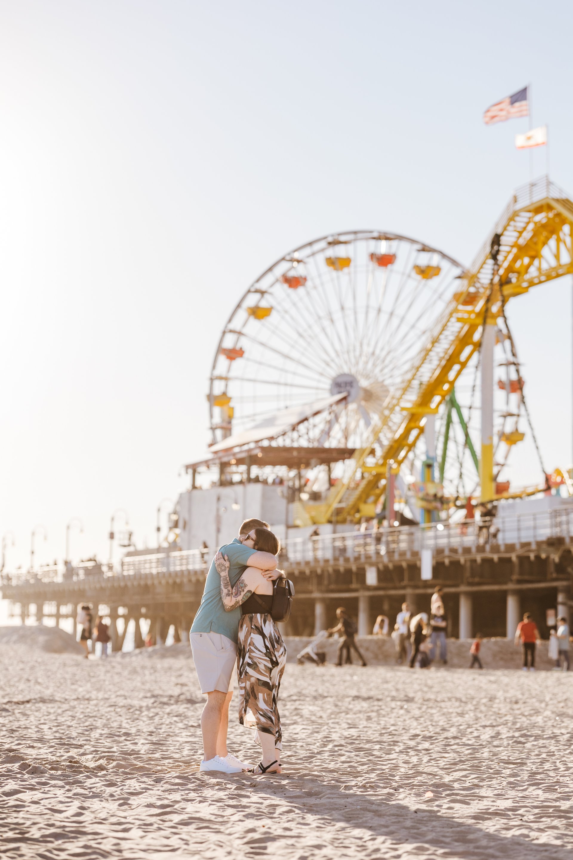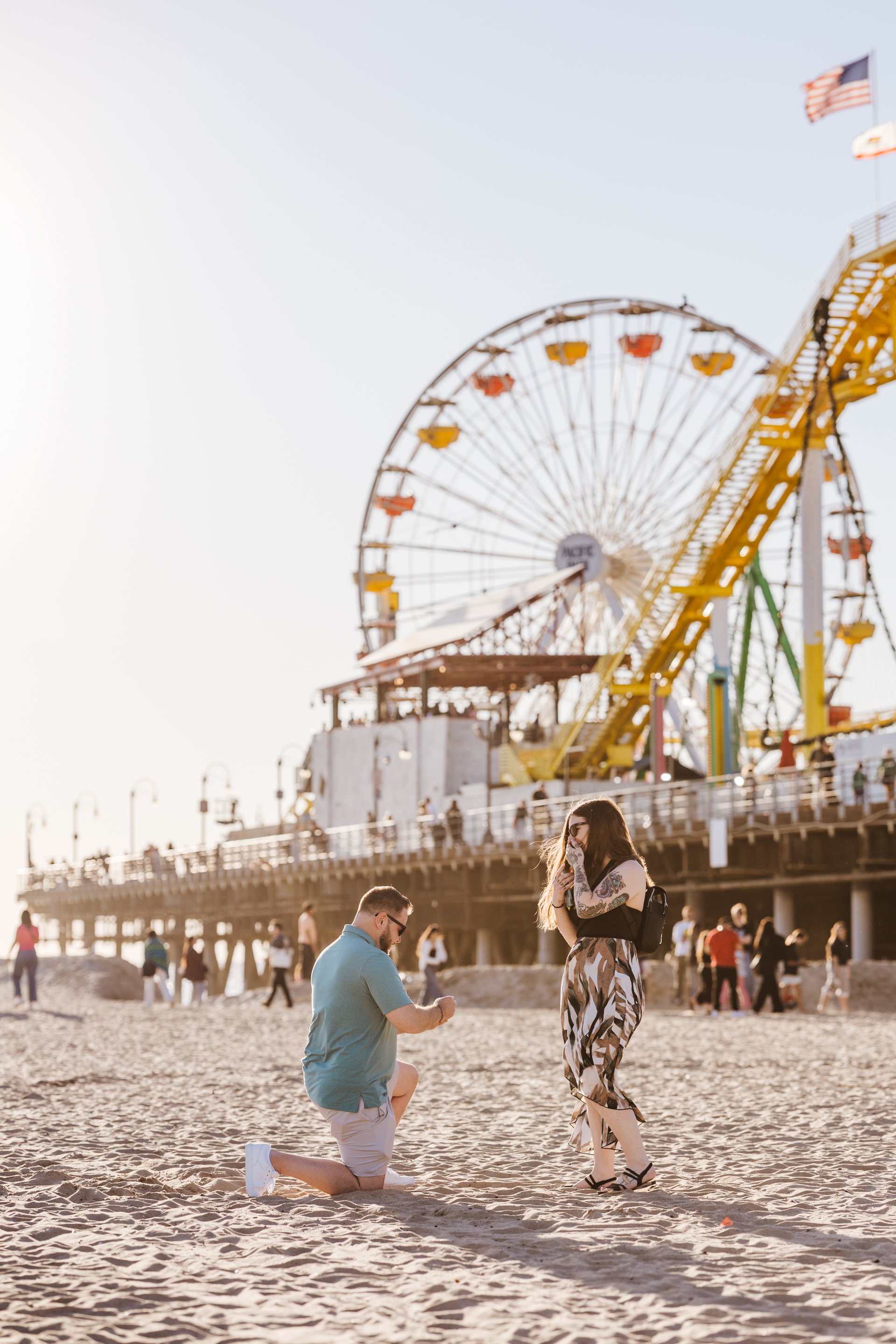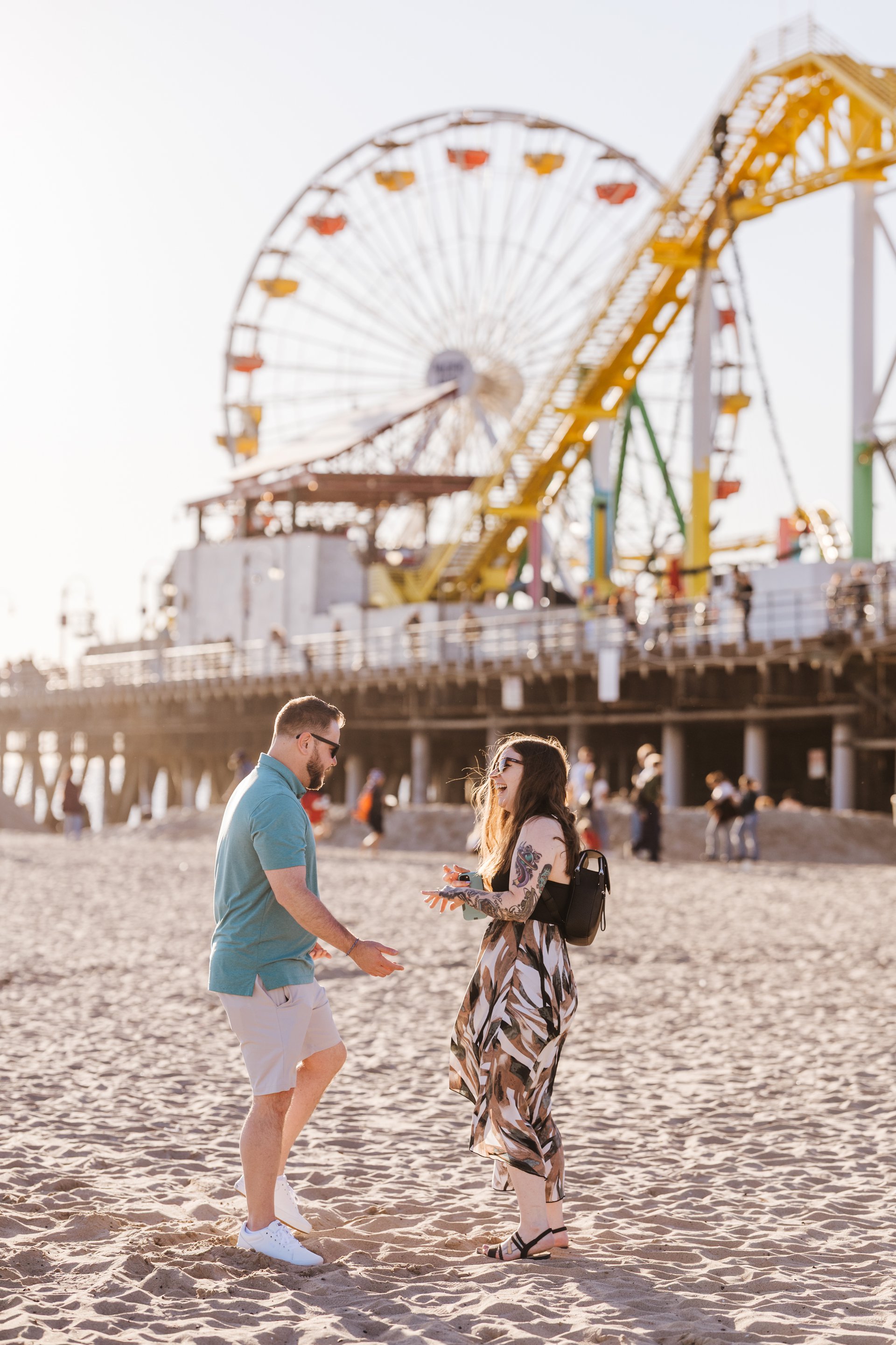 Choose one of our world-class photographers to capture your memories in Santa Monica Pier & Beach, Los Angeles. Vacation packages start at $425. Proposal packages start at $525.