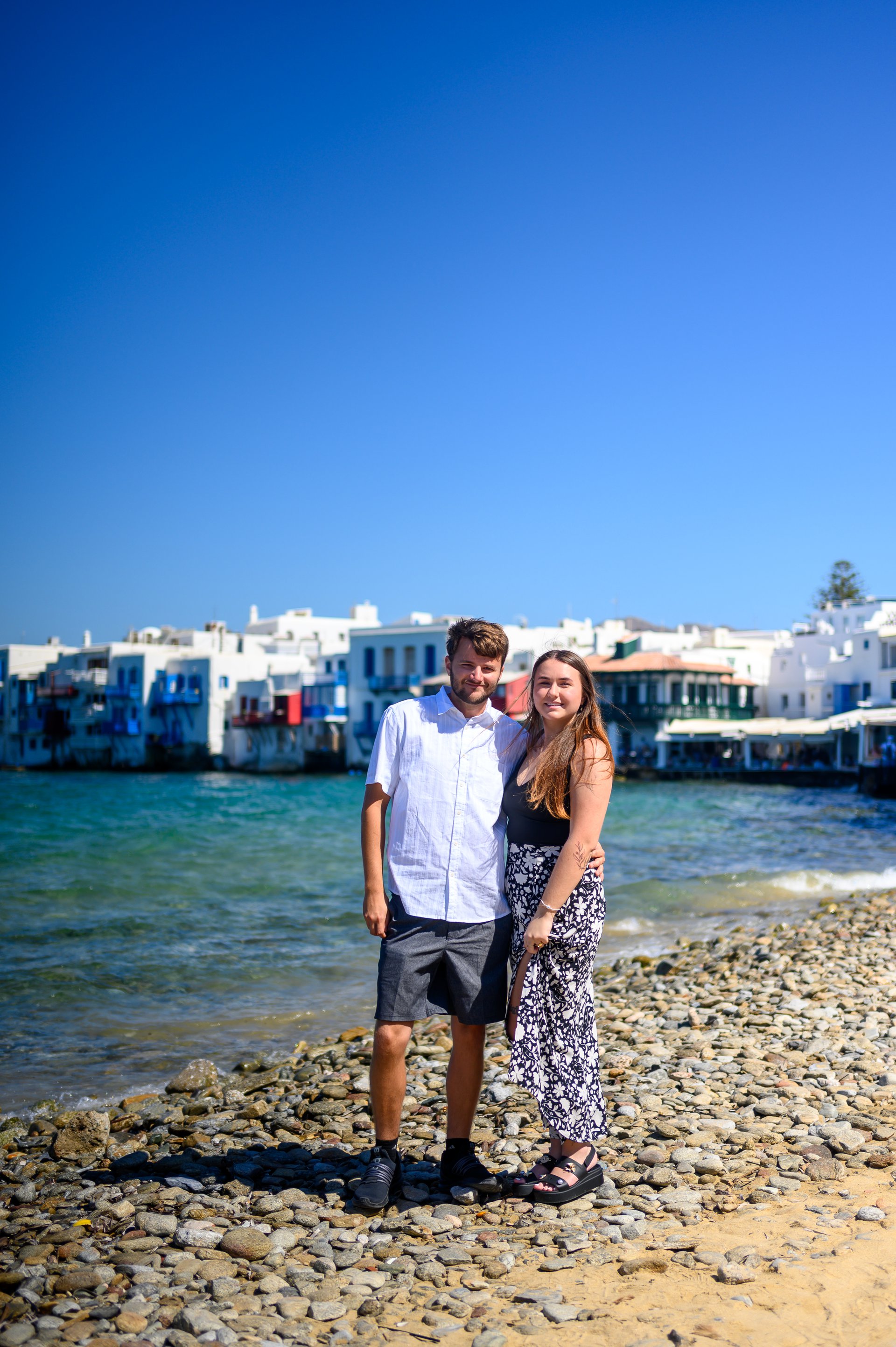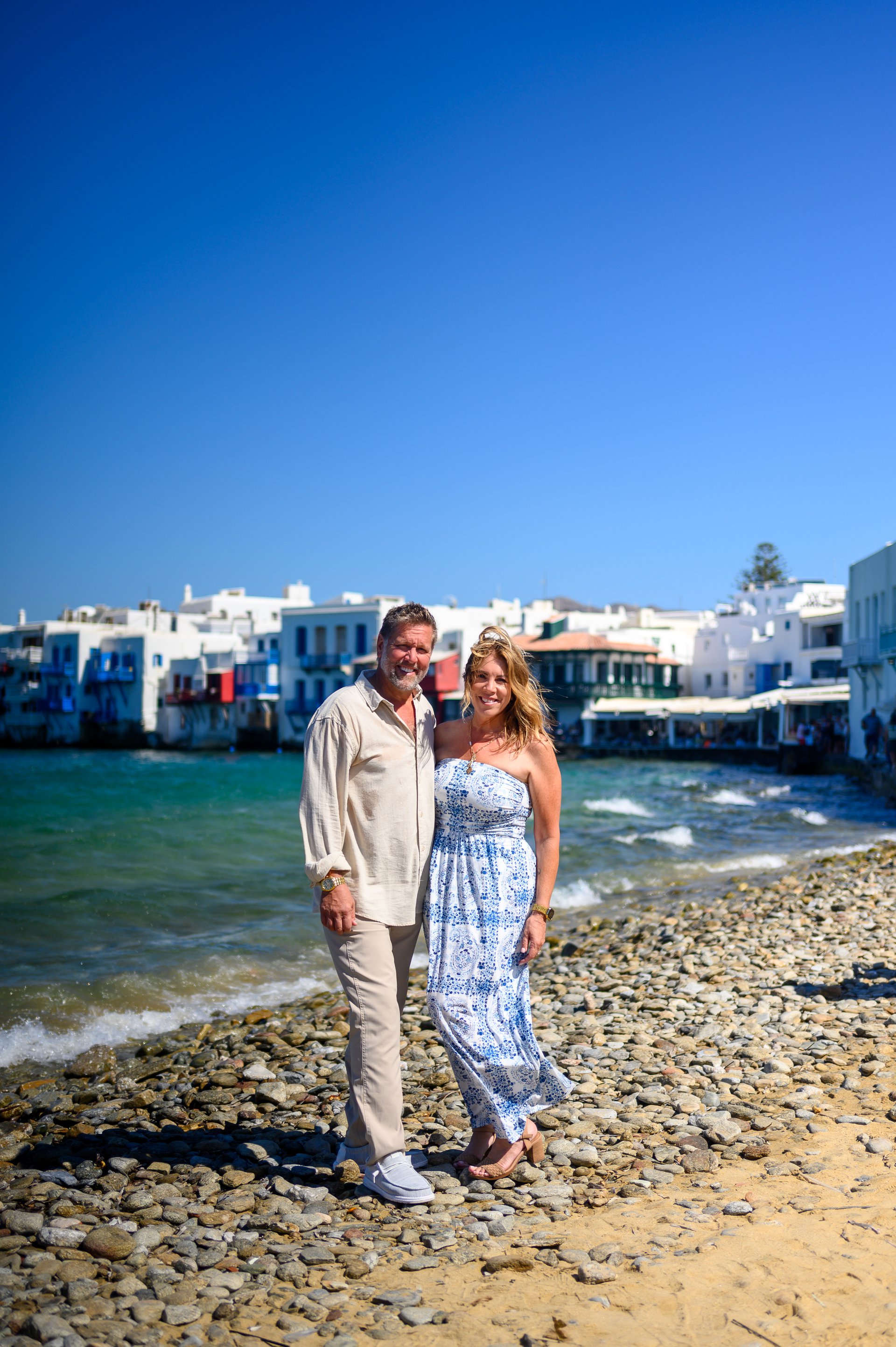 Choose one of our world-class photographers to capture your memories in Little Venice, Mykonos. Vacation packages start at $325. Proposal packages start at $425.